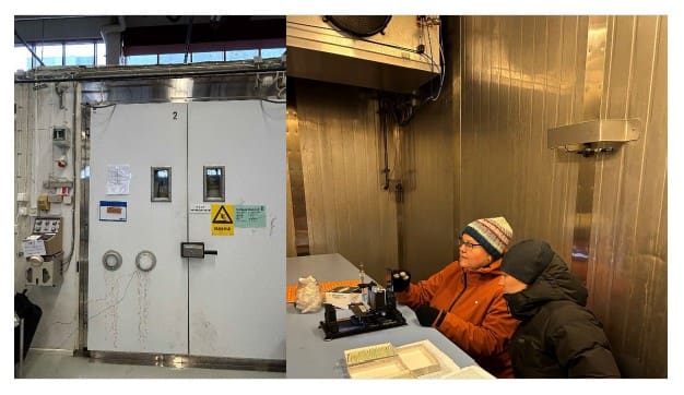Photos of activities in the freezer room where contact angles were measured at −5 °C.
