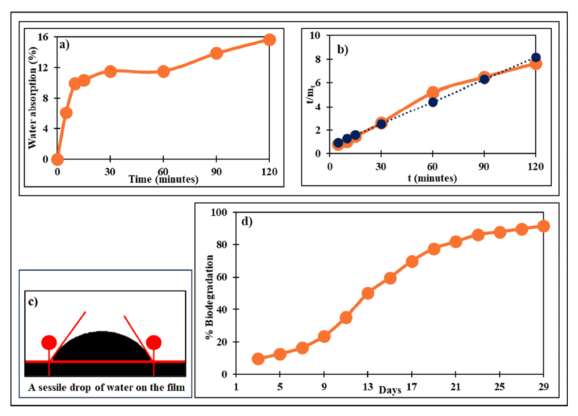 The authors state that angles less than 90° denote hydrophilicity and use the measured WCA to stress the film’s hydrophilic character.