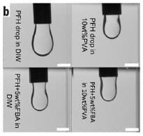 A similar surface tension is obtained when using the combination of FBA-in-PFH and PVA-in-water, as shown in the surface tension measurements.