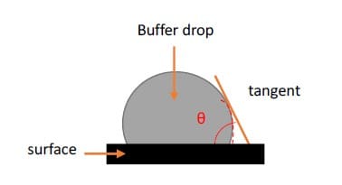 Provides a schematic “polynomial method illustration” showing a buffer drop on a surface with the tangent and contact angle (θ) indicated.